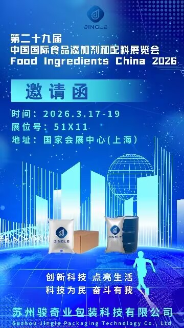 تقدم شركة Suzhou Jingle Packaging Technology دعوة صادقة لجميع المتخصصين في الصناعة والعملاء الحاليين والشركاء المحتملين للزيارة كشك 51X11 في FIC 2026. ويتطلع الفريق إلى المشاركة في مناقشات هادفة حول اتجاهات السوق والتقدم التكنولوجي والسبل الجديدة للتعاون. وتؤكد هذه المشاركة التزام الشركة بالابتكار وتفانيها في مساعدة العملاء على اغتنام الفرص في مشهد السوق الديناميكي.